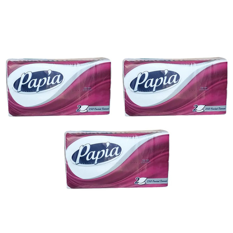 دستمال کاغذی 250 برگ پاپیا کد 002 بسته 3 عددی