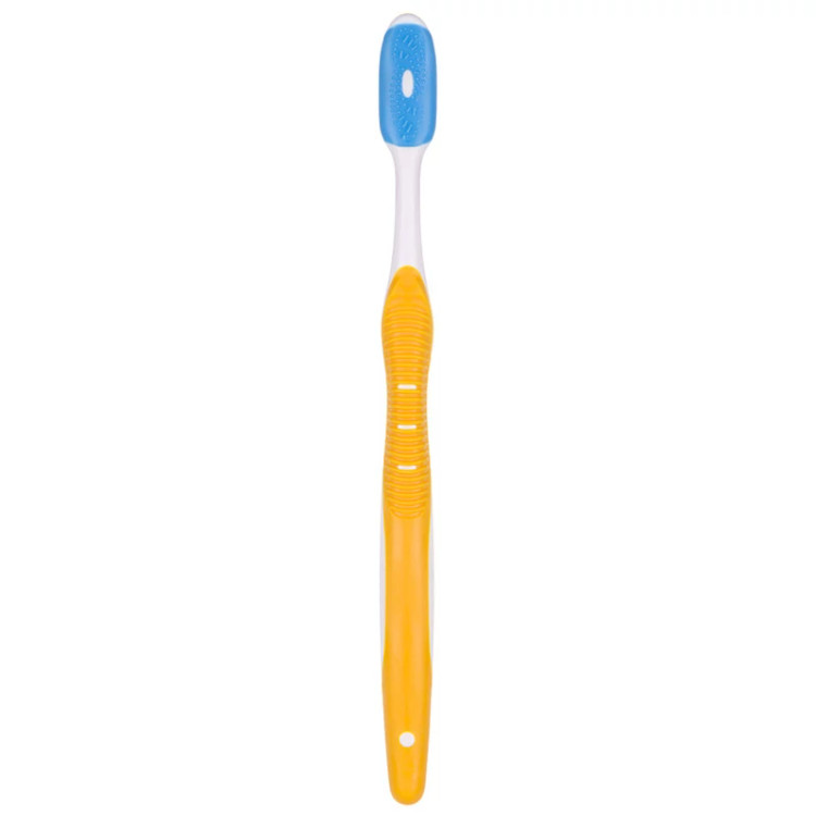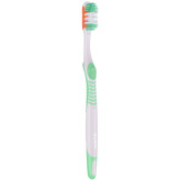 سایر مشخصات: -طراحی زبان شوی در پشت سر مسواک با هدف پاکسازی زبان از باکتری های مولد بوی بد دهان -طراحی ماساژورهای لثه در سر مسواک جهت ماساژ لثه ها و بهبود گردش خون در آنها -طراحی برس نامسطح و دارای انحنا برای مسواک با هدف پاکسازی تمام سطوح دندان ها و فضای بین دندانی -انتهای گرده شده الیاف مسواک جهت جلوگیری از آسیب به مینای دندان و لثه ها -کنترل راحت مسواک در دست به دلیل طراحی ارگونومیک آن دارای رنگ بندی متنوع و اسپرت